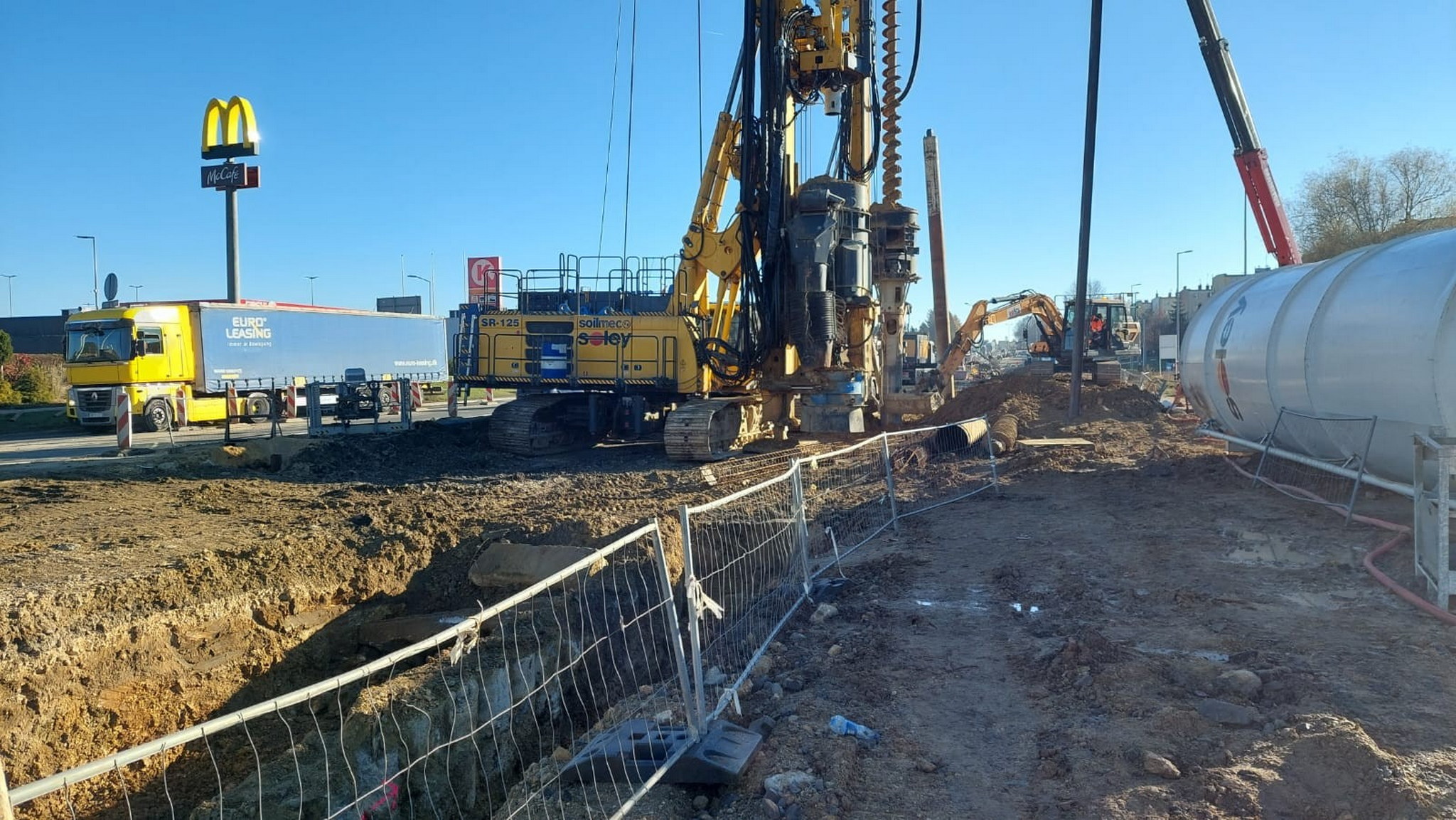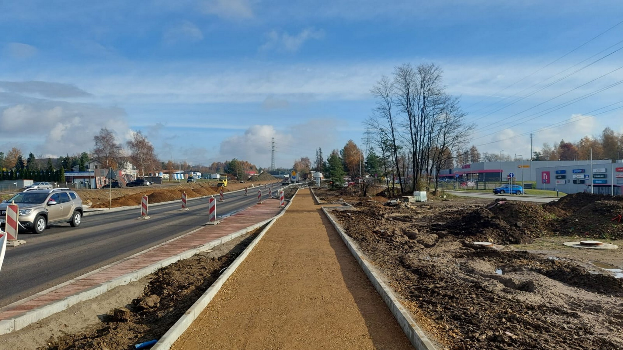 Z najnowszych informacji dotyczących przebudowy wynika, że prace na całym odcinku idą pełną parą. Wykonawca zajmuje się obecnie wypełnianiem pustek w podłożu, prowadzi prace ziemne, przygotowuje kolejne warstwy przyszłej drogi i układa nawierzchnie brukowe. Trwa również budowa podziemnego przejścia dla pieszych oraz kładki nad drogą. Na placu budowy powstają też nowe instalacje – między innymi oświetlenie, sieci wodociągowe, gazowe i elektryczne – które wymagają stopniowej przebudowy. Równolegle prowadzone są prace przy montażu ekranów akustycznych, które mają ograniczyć hałas po zakończeniu inwestycji.