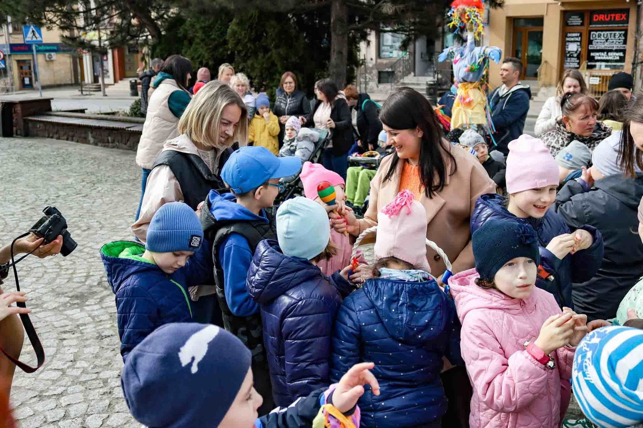 Aby dodatkowo umilić czas przybyłym, przedstawicielki lokalnych władz – zastępca burmistrza Dominika Bugaj oraz sekretarz Anna Ryl – przygotowały dla wszystkich uczestników słodką niespodziankę. Ten drobny gest sprawił, że wspólne świętowanie stało się jeszcze przyjemniejsze. Dodatkowa dawka endorfin i wiosenna aura sprzyjały integracji, dzięki czemu atmosfera na placu była wyjątkowo serdeczna.