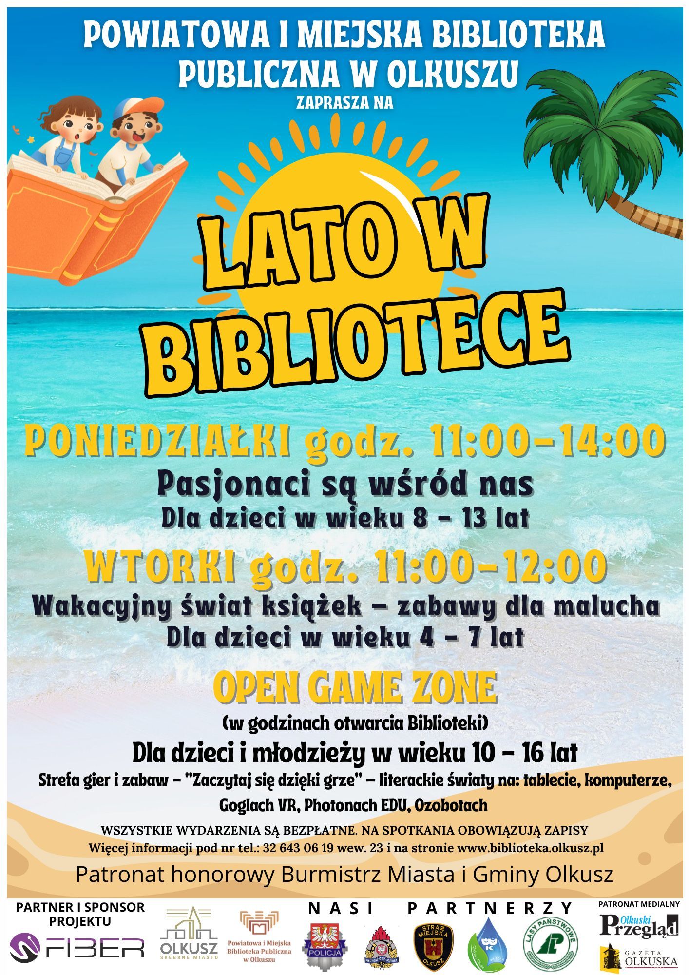 W tym roku hasło przewodnie „Lata w Bibliotece” brzmi „Pasjonaci są wśród nas” i kryje się pod nim wyjątkowy program wakacyjnych zajęć pełnych pasji, inspirujących spotkań, warsztatów czy nowoczesnych technologii: w poniedziałki dzieci mają okazję poznać osoby pełne pasji, które opowiadają o swojej pracy oraz zainteresowaniach. We wtorki odbywają się natomiast kreatywne zabawy z książką pod hasłem „Wakacyjny świat książek”, a w środy, czwartki i piątki olkuska książnica zaprasza do korzystania z otwartej strefy gier oraz nowych technologii „Open Game Zone”. Szczegółowe informacje dostępne są na stronie internetowej Powiatowej i Miejskiej Biblioteki Publicznej w Olkuszu.