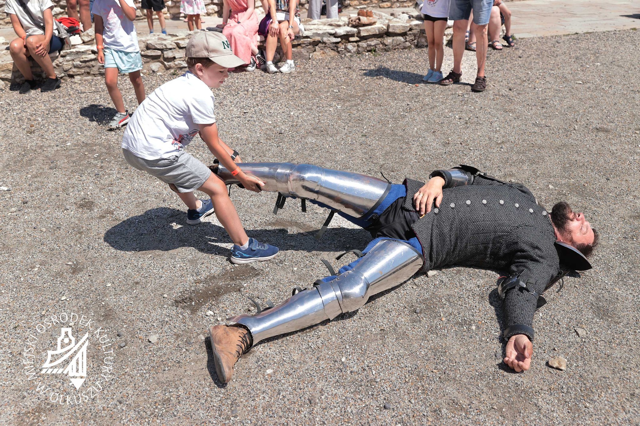 Rozrywki umilające zwiedzanie rabsztyńskiego zamku rozpoczęły w sobotę pokazy rycerskie: wspaniali wojownicy skupili się nie tylko na technikach walki różnymi średniowiecznymi rodzajami broni, ale nakreślili także tło obyczajowe epoki oraz zaprezentowali historyczne stroje.