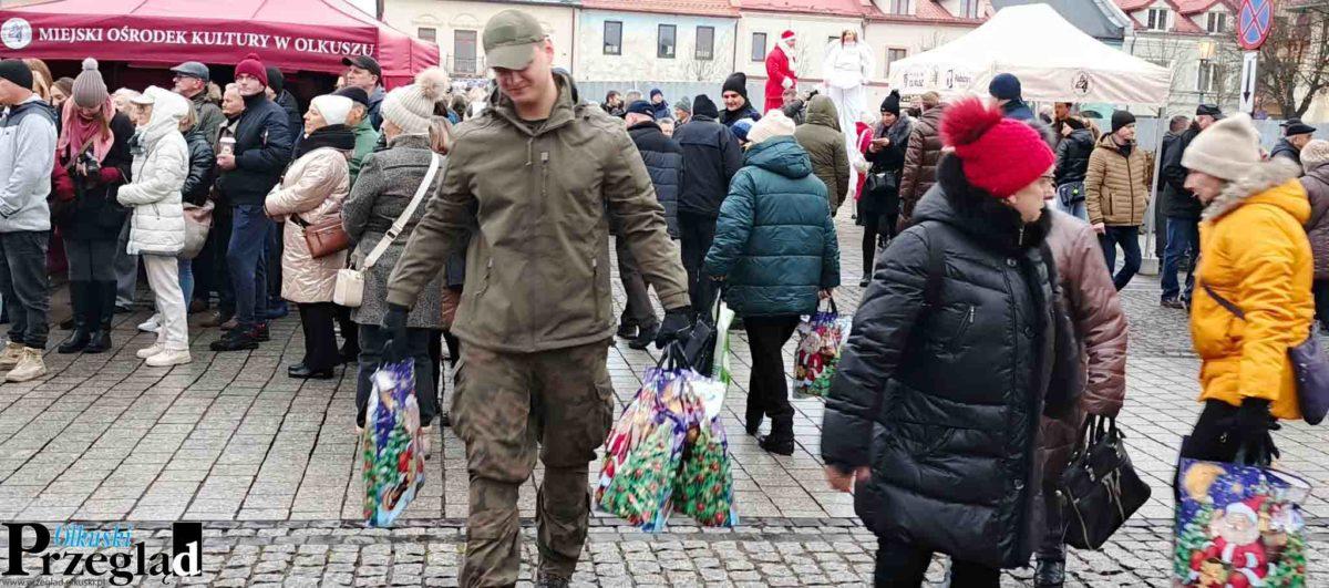 Nie zabrakło również świątecznego poczęstunku, przygotowanego z prawdziwym sercem. Długie kolejki ustawiały się po pyszne ciasta oraz ciepłe dania – łazanki, barszcz z uszkami i pierogi, które smakowały wszystkim bez wyjątku. Organizatorzy zadbali także o tych, którzy najbardziej potrzebowali wsparcia. Dla osób w potrzebie przygotowano paczki z żywnością. Każdy uczestnik posiadający bon otrzymał świąteczny prezent wraz z życzeniami.