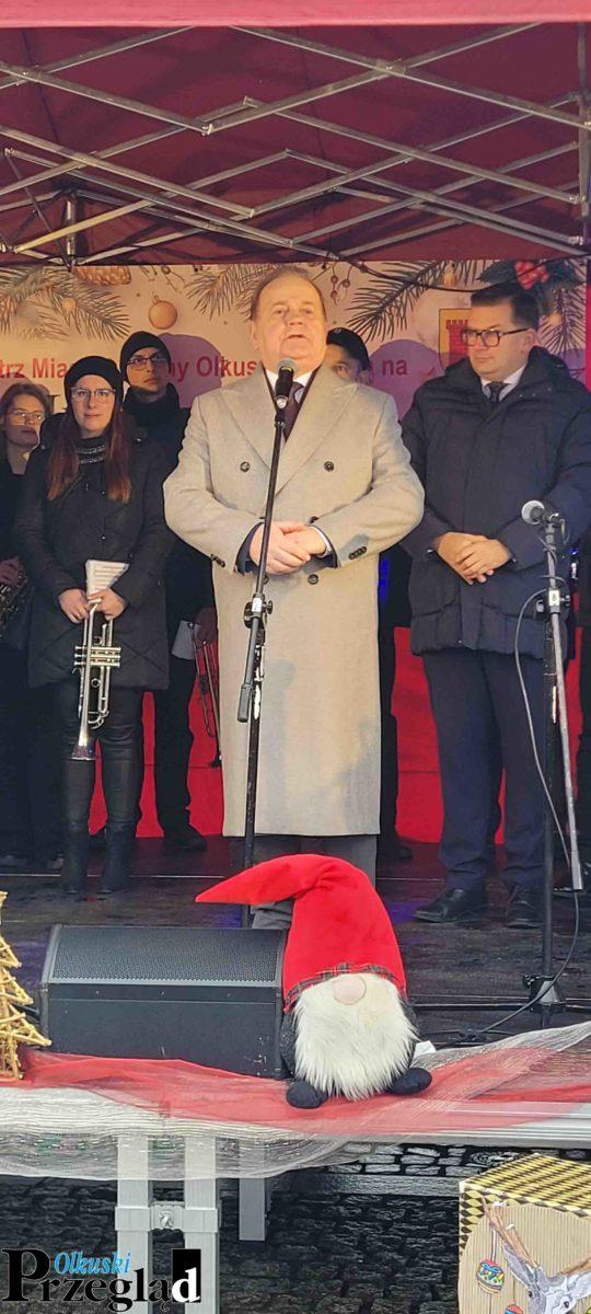 „Drogie olkuszanki i olkuszanie, przed nami najpiękniejszy czas w roku, wypełniony spotkaniami z rodziną i przyjaciółmi. Pozwólcie Państwo, ze z okazji zbliżających się Świąt Bożego Narodzenia złożę wszystkim tu obecnym najserdeczniejsze życzenia. To Wasza obecność sprawia, że to święto jest dzisiaj tak wyjątkowe i piękne. Niech najbliższy czas spędzony wspólnie w atmosferze miłości i pokoju da siłę do pokonywania trudności jakie mogą być w 2026 roku. Niech dobre zdrowie i radość, towarzyszą Państwu każdego dnia. Życzę Wesołych Świąt Bożego Narodzenia i Szczęśliwego Nowego Roku”.