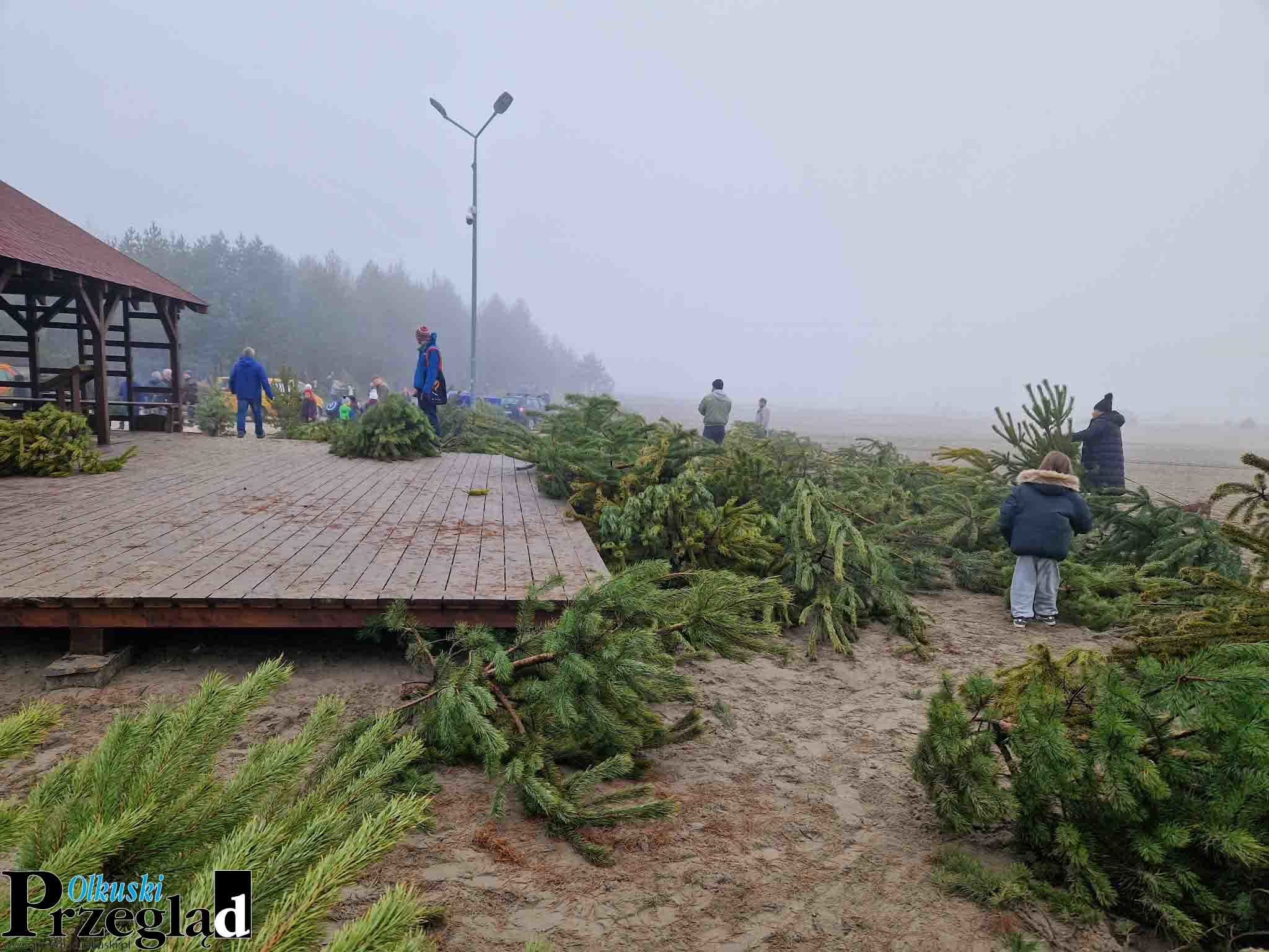 Szczególnie żywa atmosfera panowała w Kluczach. Na miejscu obecny był sam Wójt Gminy Norbert Bień, który witał uczestników wydarzenia. Pierwsi chętni pojawili się już około godziny 8.00, chcąc mieć jak największy wybór. Na placu leżało mnóstwo choinek – każdą można było obejrzeć, porównać i wybrać tę, która najbardziej odpowiadała świątecznej wizji domowników. W tle słychać było charakterystyczne odgłosy pił spalinowych, a z minuty na minutę tworzyły się coraz większe kolejki. Wjazd na Pustynię Błędowską był tego dnia możliwy, ponieważ szlabany zostały podniesione, co dodatkowo usprawniło przebieg akcji.