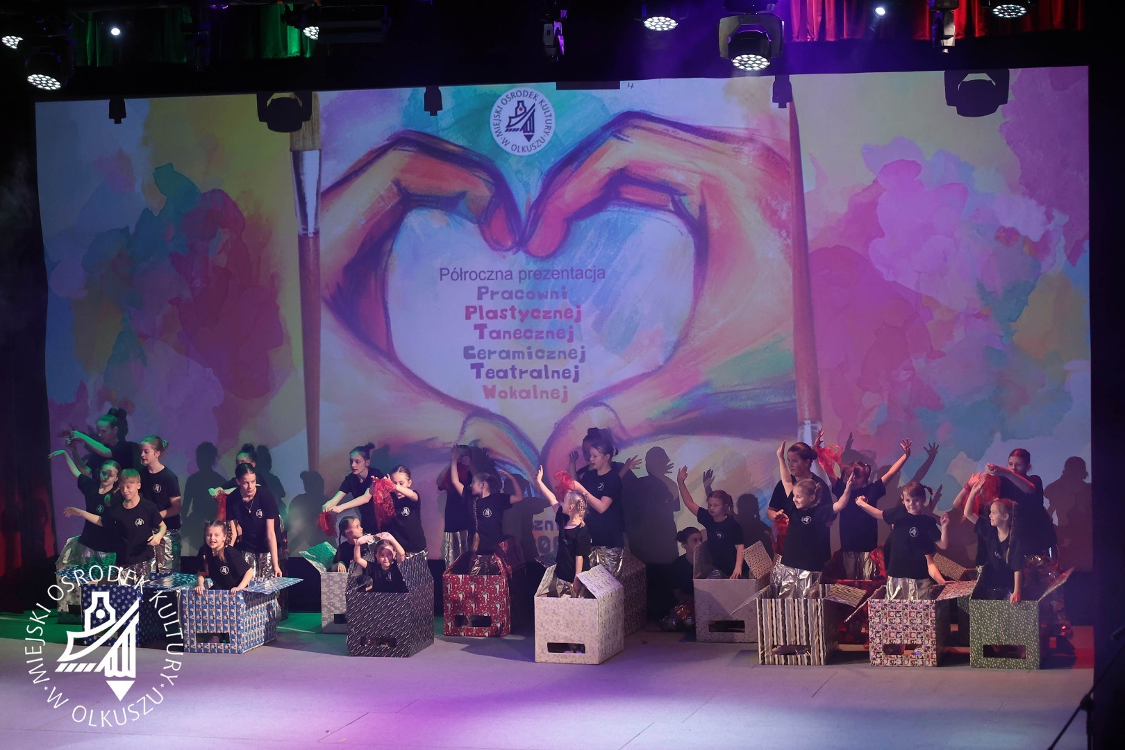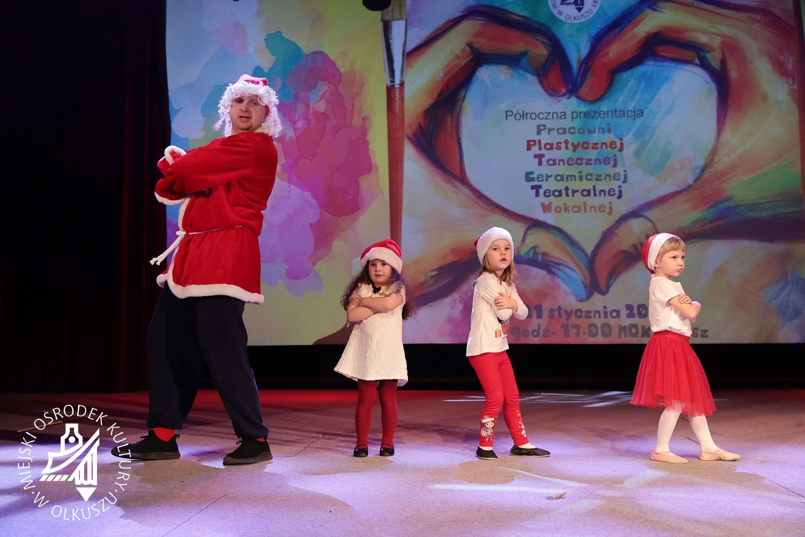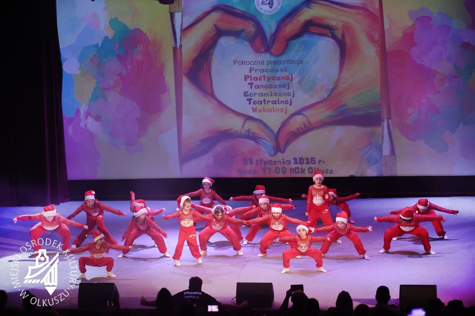 Na scenie chwaliły się swoimi występami sekcje: taneczna pod kierownictwem Aleha Sapronchyka i wokalna prowadzona przez Anetę Ślusarczyk. Taniec, muzyka, śpiew i piękne stroje. Tańczyły grupy: Impuls, Impuls Kids, Żabki, Słoneczka, Sonic, Energia. Żywe rytmy wciąż pobrzmiewały świąteczną muzyką. Kontynuowały to dzieci z pracowni wokalnej śpiewając „Przybieżeli do Betlejem” i „Puk, puk, puk”.