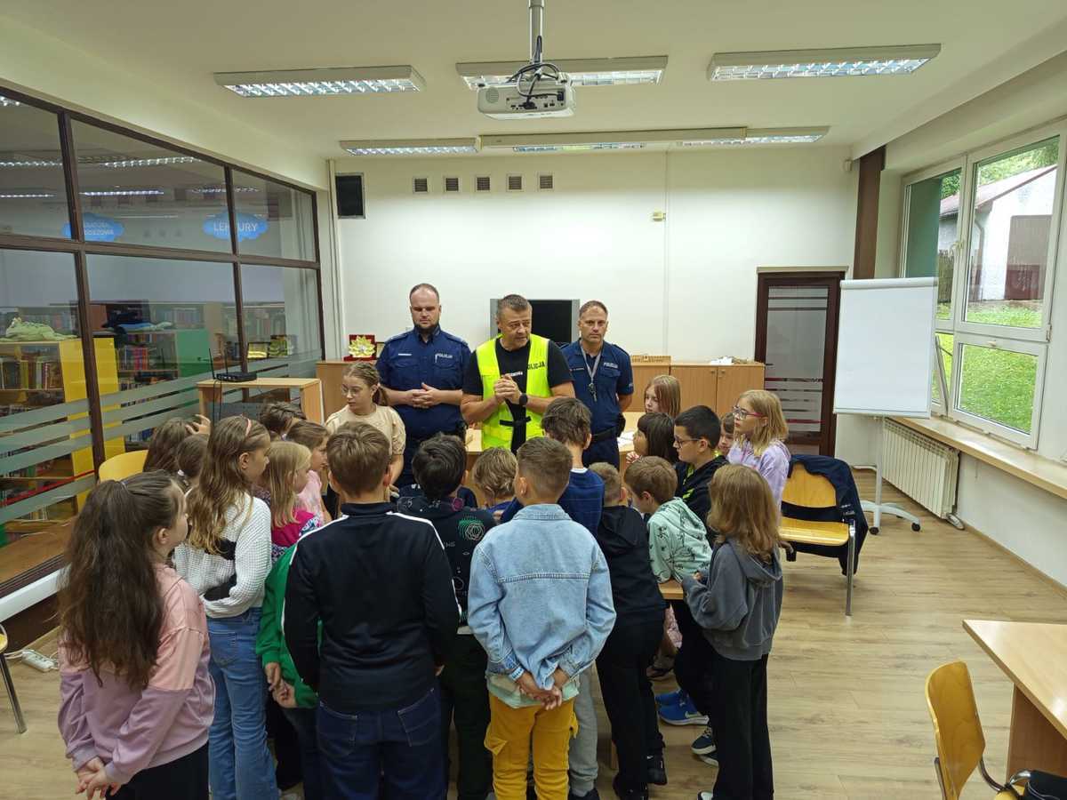 Funkcjonariusze opowiedzieli o swojej pracy, a technik kryminalistyki przybliżył dzieciom podstawy daktyloskopii i techniki zabezpieczania śladów. Uczestnicy mogli także obejrzeć policyjny radiowóz i zapoznać się z jego wyposażeniem.