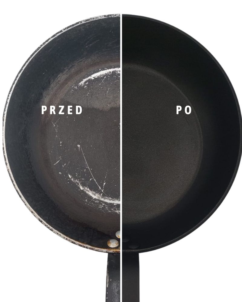 Patelnia przed i po nałożeniu nowej powłoki