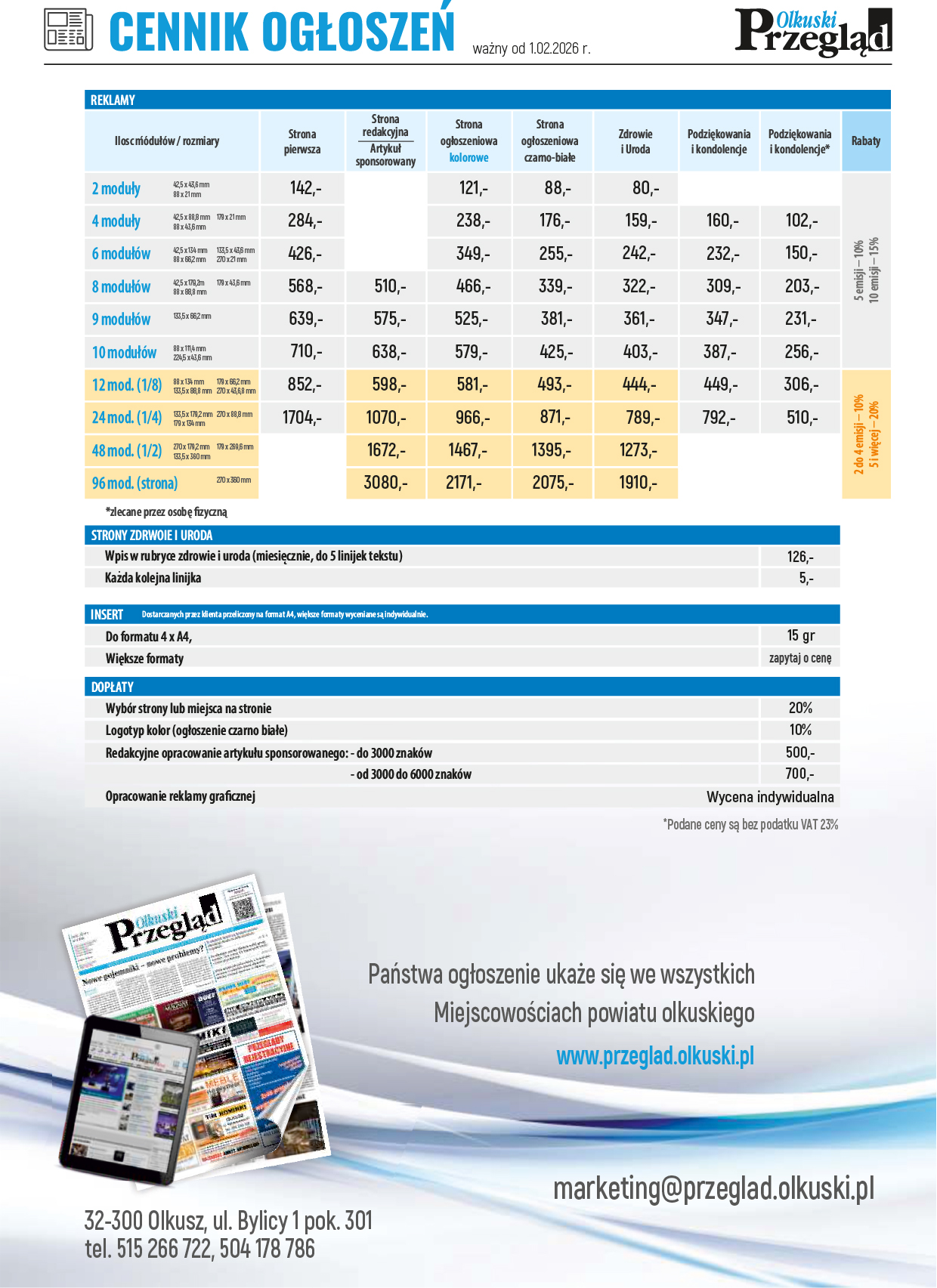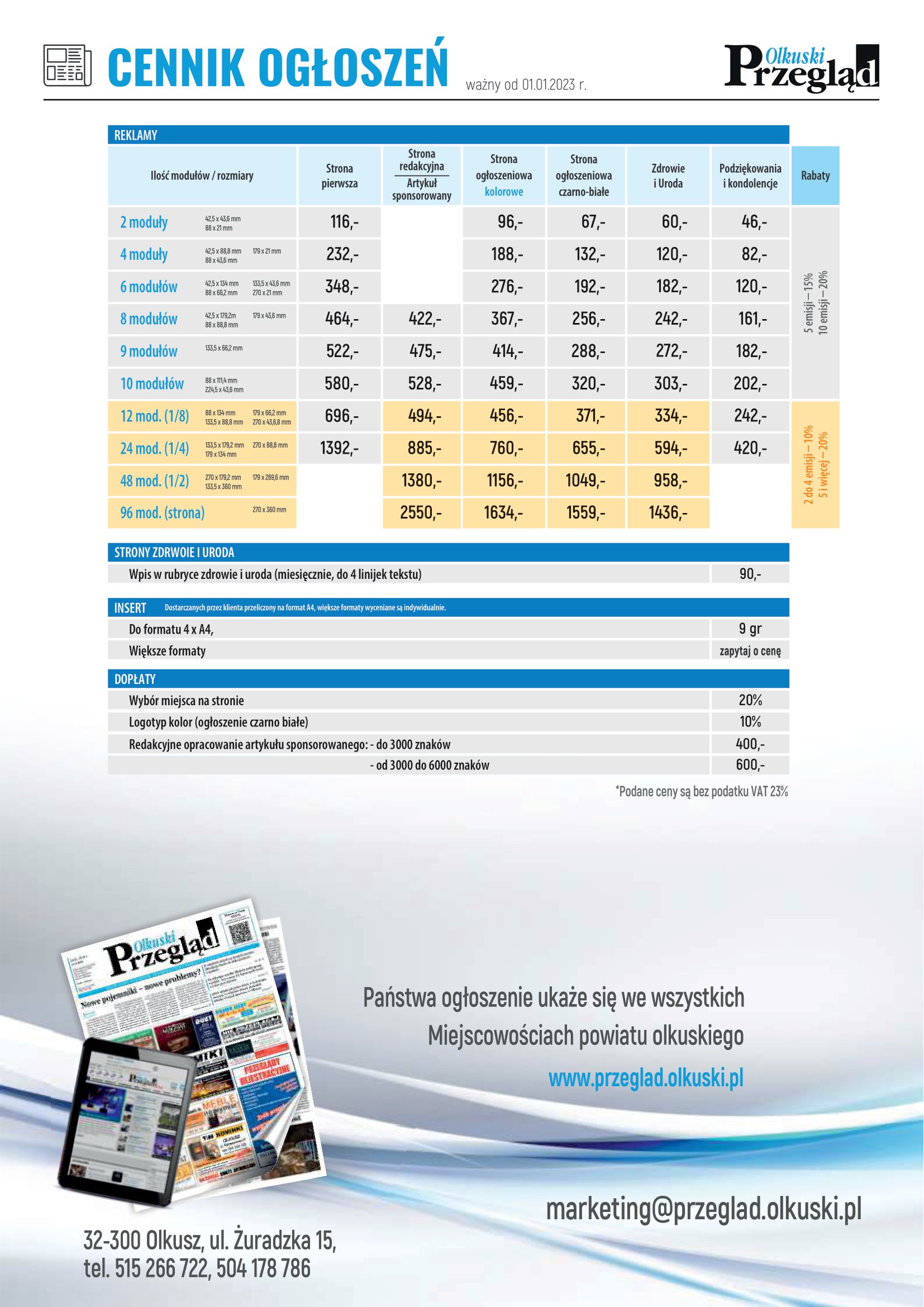 - Cennik ogłoszeń tygodnika Przegląd Olkuski