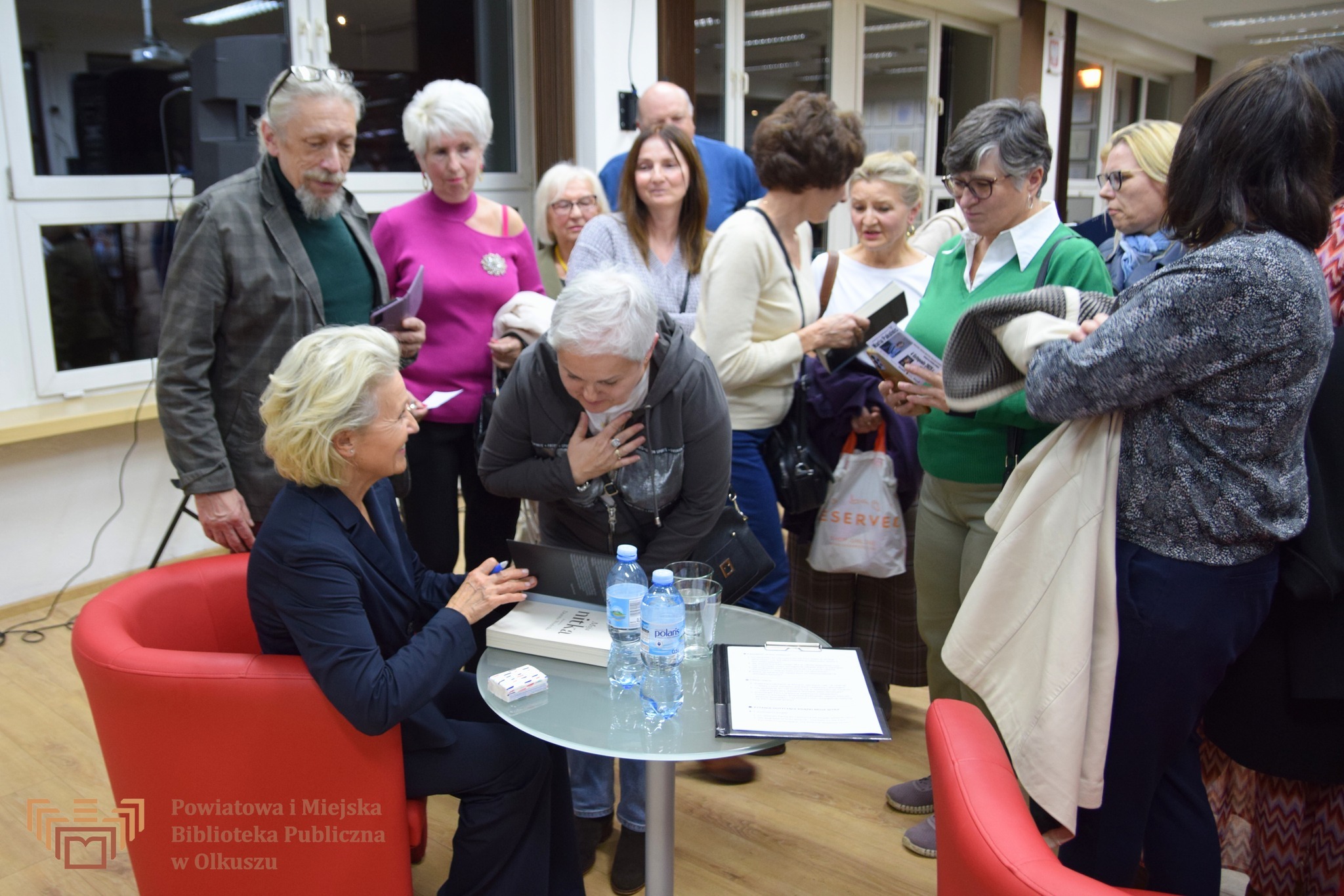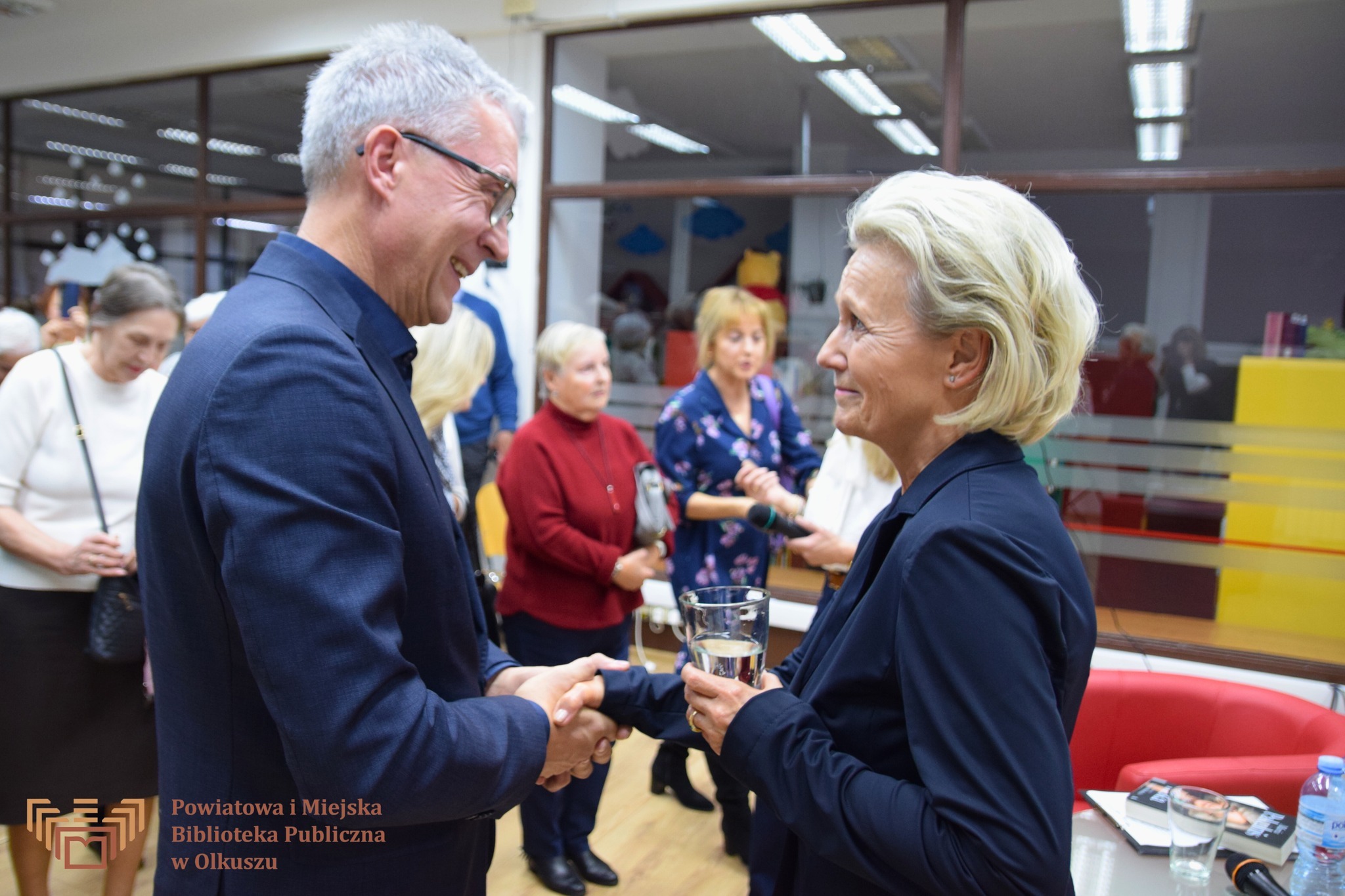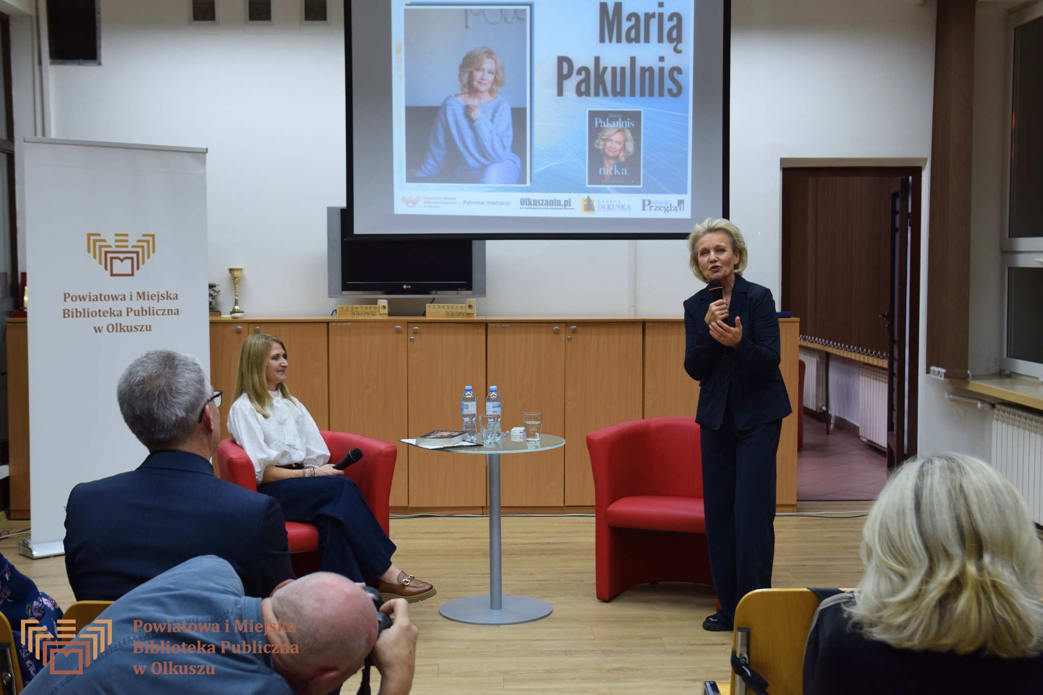 4 listopada 2025 roku w Bibliotece odbyło się niezwykłe spotkanie autorskie z Marią Pakulnis – jedną z najbardziej cenionych i charyzmatycznych polskich aktorek. Wydarzenie przyciągnęło tłumy miłośników kina, teatru i dobrej literatury, a sala wypełniła się po brzegi. Spotkanie było połączone z promocją książki „Moja nitka”, powstałej we współpracy z dziennikarką Dorotą Wodecką. Spotkanie uświetnił swoją obecnością Wiceburmistrz Miasta i Gminy Olkusz, Pan Dariusz Murawski.