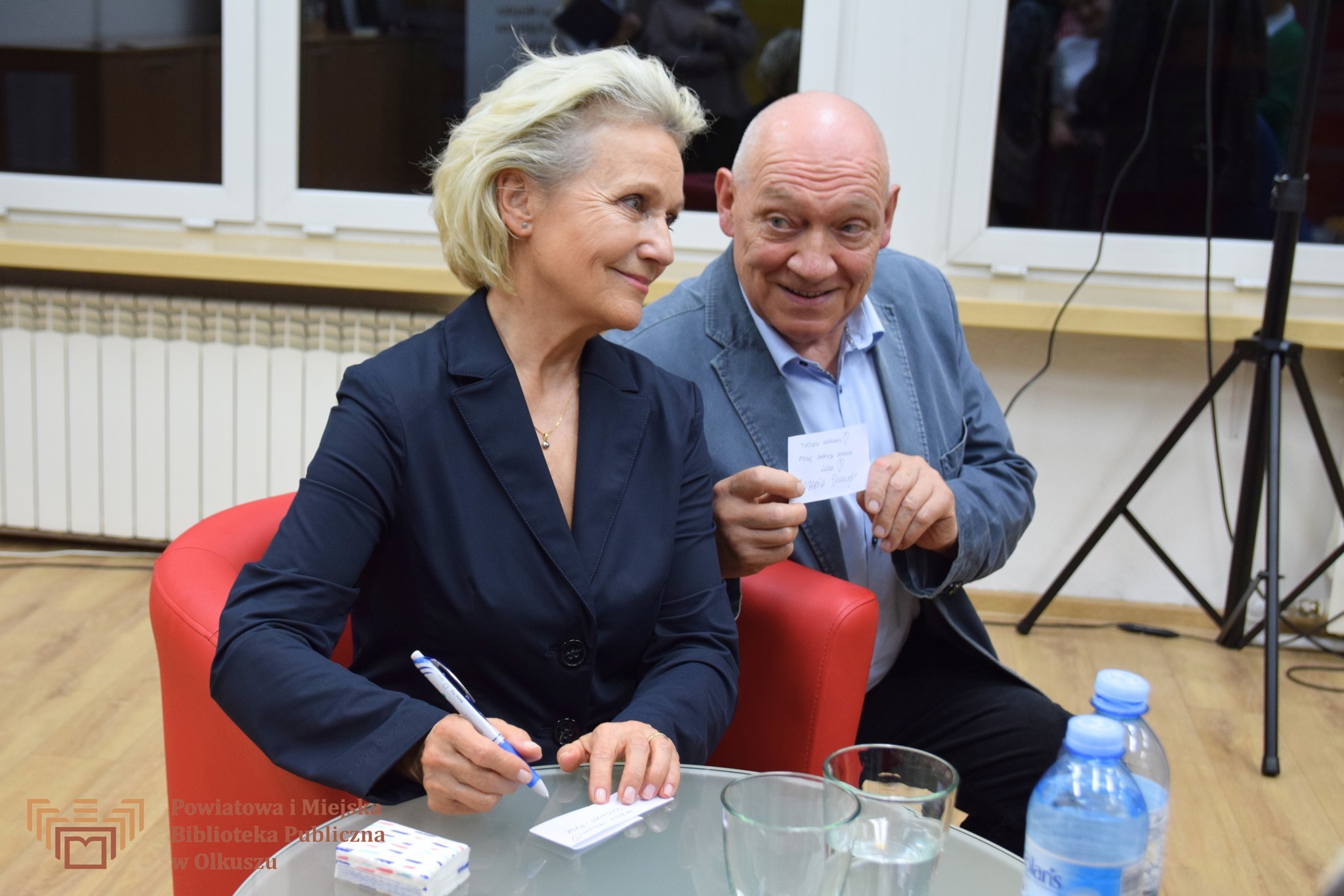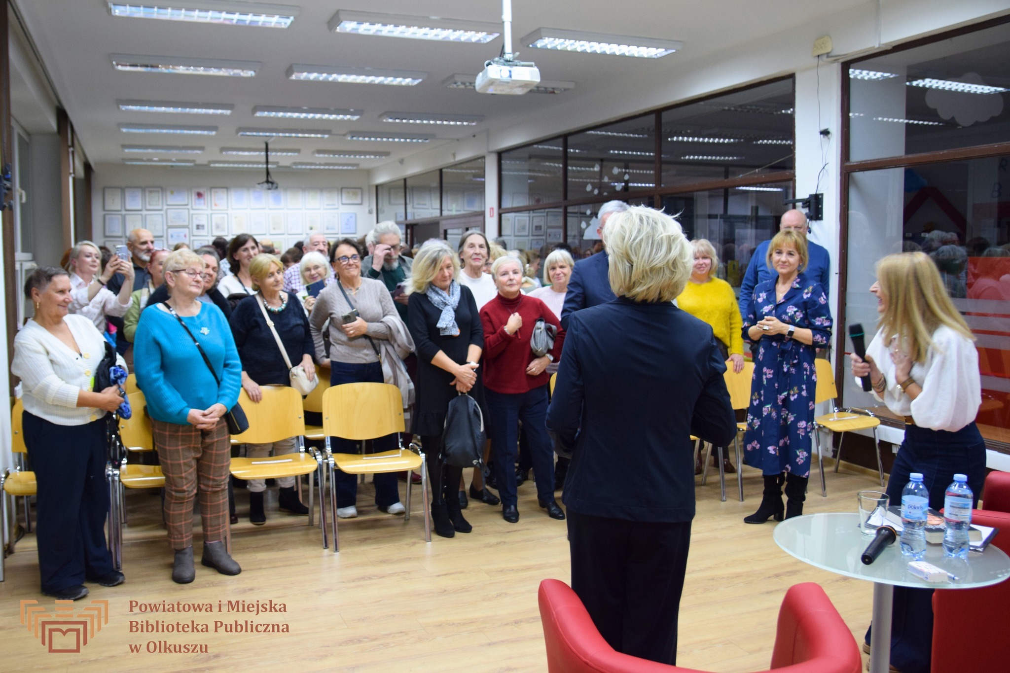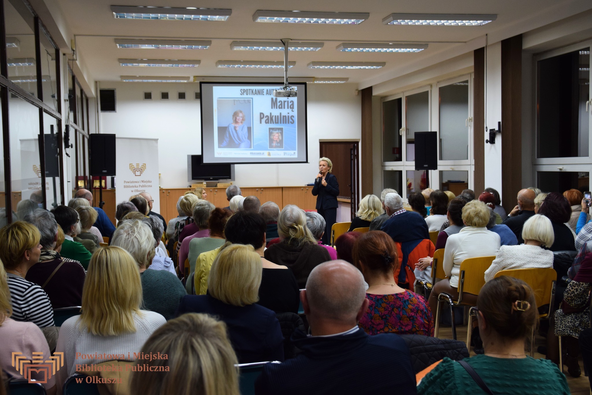 4 listopada 2025 roku w Bibliotece odbyło się niezwykłe spotkanie autorskie z Marią Pakulnis – jedną z najbardziej cenionych i charyzmatycznych polskich aktorek. Wydarzenie przyciągnęło tłumy miłośników kina, teatru i dobrej literatury, a sala wypełniła się po brzegi. Spotkanie było połączone z promocją książki „Moja nitka”, powstałej we współpracy z dziennikarką Dorotą Wodecką. Spotkanie uświetnił swoją obecnością Wiceburmistrz Miasta i Gminy Olkusz, Pan Dariusz Murawski.