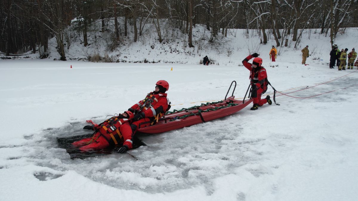 W przeciwieństwie do typowych działań, podczas których Policja skupia się głównie na zabezpieczeniu terenu, tym razem funkcjonariusze aktywnie uczestniczyli w części ratowniczej. Policjanci ćwiczyli wejście na lód w odpowiednim zabezpieczeniu, techniki asekuracji, obsługę sprzętu ratowniczego oraz współdziałanie z ratownikami WOPR i strażakami PSP oraz OSP bezpośrednio przy ewakuacji osoby poszkodowanej. Była to okazja do praktycznego doskonalenia umiejętności, które mogą okazać się kluczowe w sytuacji, gdy patrol jako pierwszy dotrze na miejsce zdarzenia. Ćwiczenia obejmowały również koordynację działań kilku podmiotów jednocześnie oraz sprawną komunikację między służbami. Strażacy PSP i OSP realizowali zadania związane z technicznym dostępem do osoby poszkodowanej, natomiast ratownicy WOPR nadzorowali prawidłową technikę działań na lodzie i bezpieczeństwo ćwiczących.