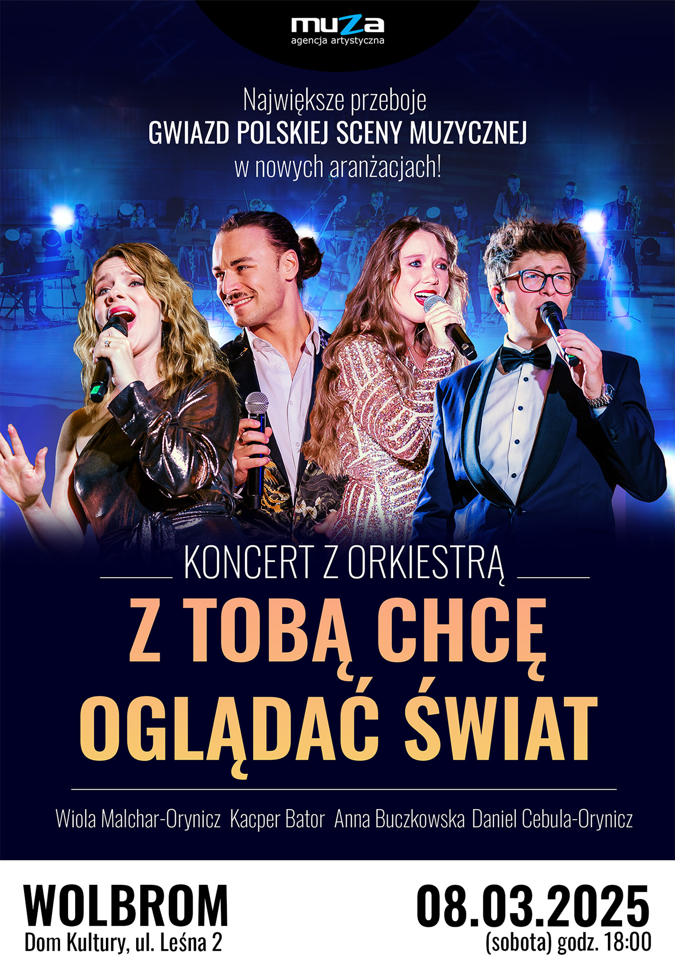 Koncert ”Z Tobą chcę oglądać świat”, to wyjątkowe wydarzenie muzyczne, oraz chwila refleksji nad artystycznym dziedzictwem polskiej piosenki i jej wpływem na kształtowanie sceny muzycznej. Podczas wydarzenia publiczność będzie miała okazję odkryć, znane i lubiane utwory w nowych aranżacjach.
