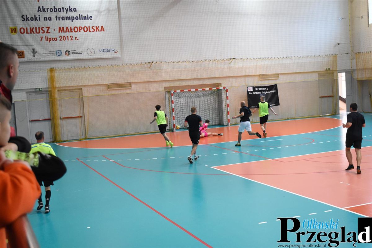 Po młodych adeptach futbolu do rywalizacji przystąpili starsi zawodnicy. Siedem drużyn, formuła „każdy z każdym”, 21 meczów – można było zaczynać. Na parkiecie zameldowały się zespoły: Kolegium Sędziów Olkusz, Fast Food Squad, Komenda Powiatowa Policji w Olkuszu, Przyjaciele Jezusa, Norma Team, KS Olkusz oraz Stowarzyszenie z Piłką w Sercu.
